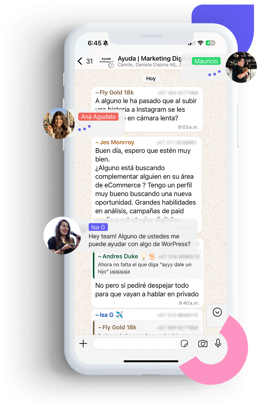 Puedes pedir ayuda, compartir herramientas, debatir temas clave del sector y enterarte de nuevas oportunidades laborales, todo en un ambiente colaborativo y de buena vibra.
